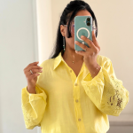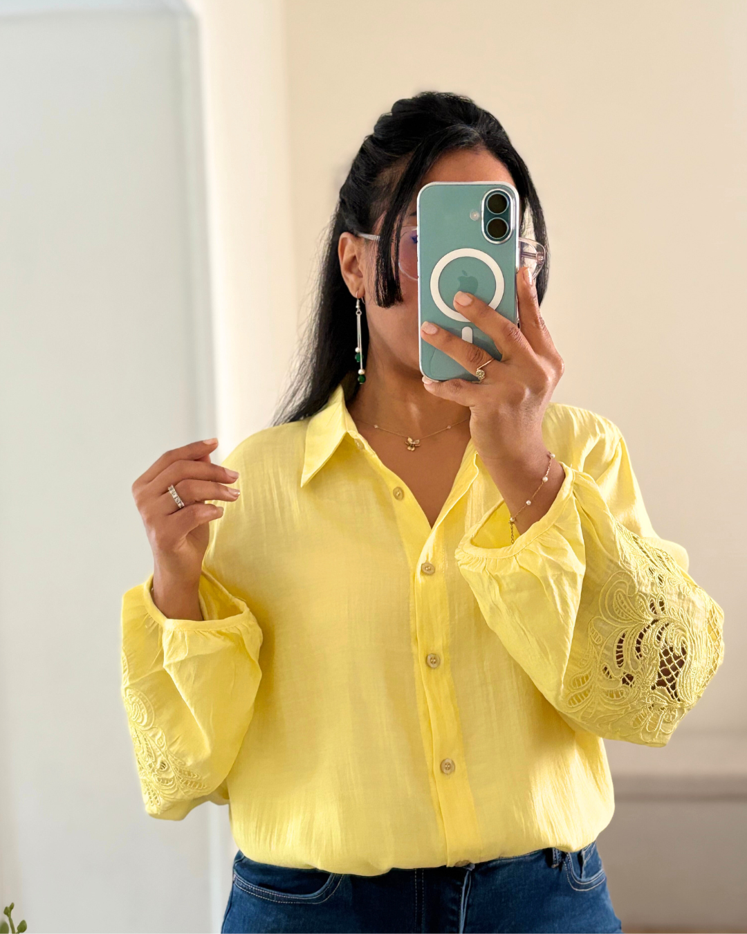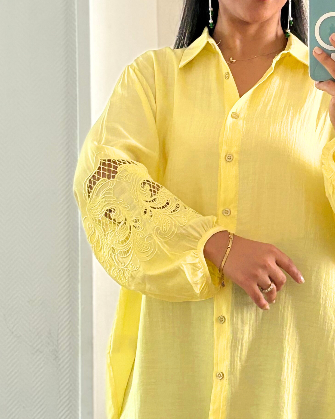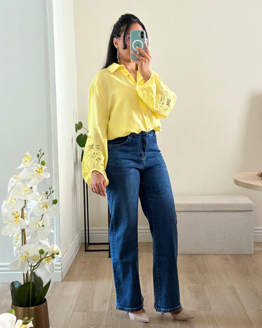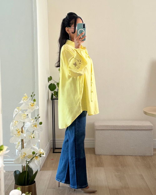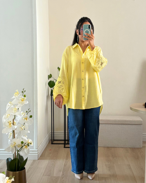Chemisier fluide en viscose légère, à la fois élégant et confortable. Ses manches bouffantes sont sublimées par une magnifique broderie, apportant une touche raffinée à cette pièce intemporelle.
